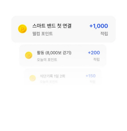 - 일일 걷기 챌린지: 하루 8,000보(70세 이상 5,000보) 달성 시 200포인트. 당일 24시까지 앱에서 수령해야 하며, 미수령 시 소멸됩니다.